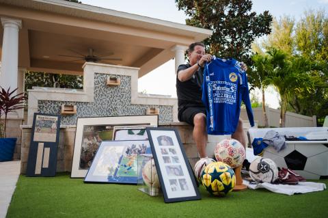 As we sit in his home after that U-12 match he coached, it’s tough not to be overwhelmed by the magnitude of everything he accomplished. For hours, we sift through boxes and boxes of memorabilia from his playing days – jerseys, his first professional check, signed soccer balls, trophies, and old photos. In a little box, sits the 1999 Open Cup championship ring next to a few of his other ones from the multiple titles he’s earned.